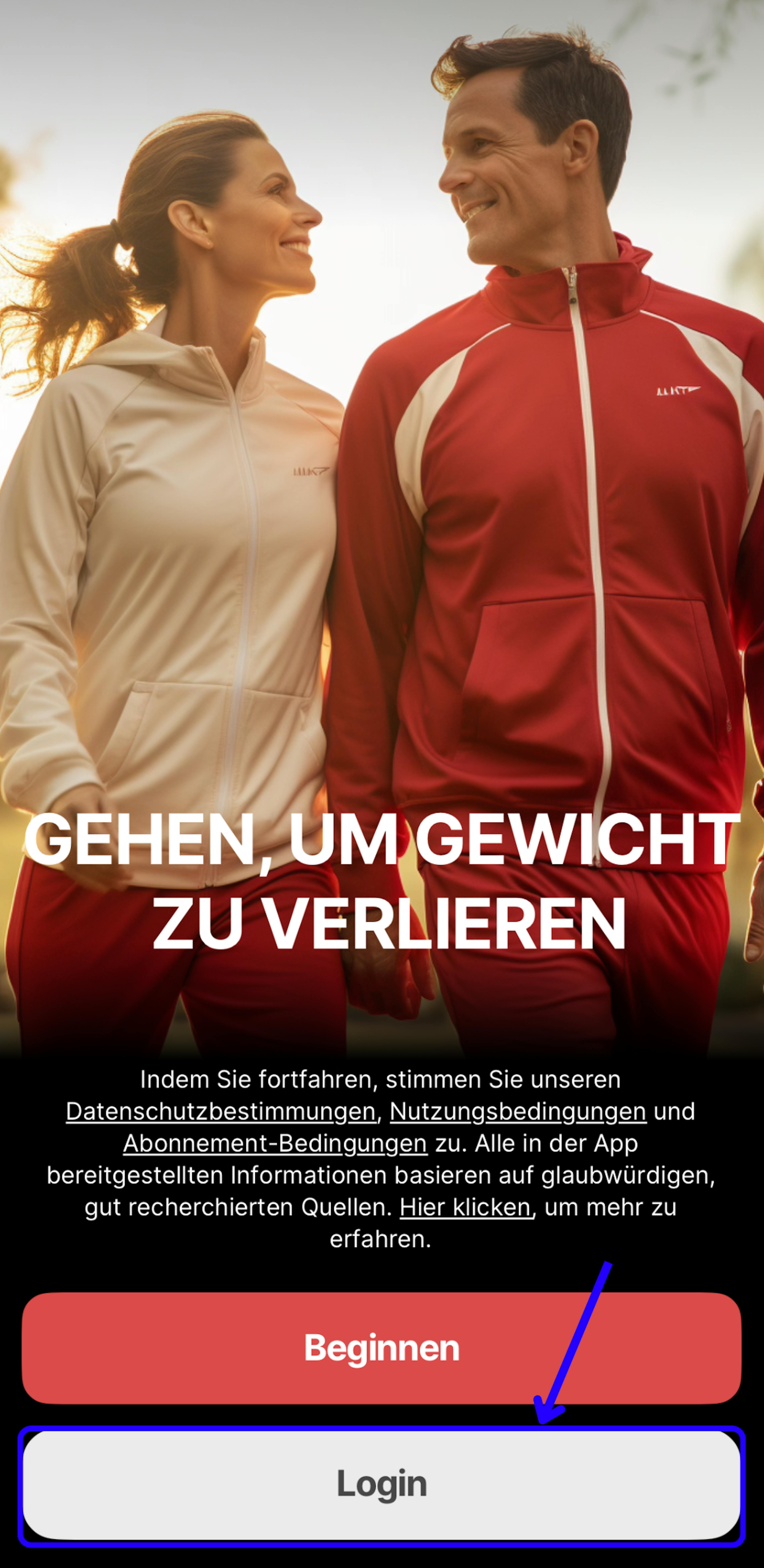 Tippe auf die Schaltfläche "Login", um dich bei deinem Konto anzumelden, wie oben gezeigt.
