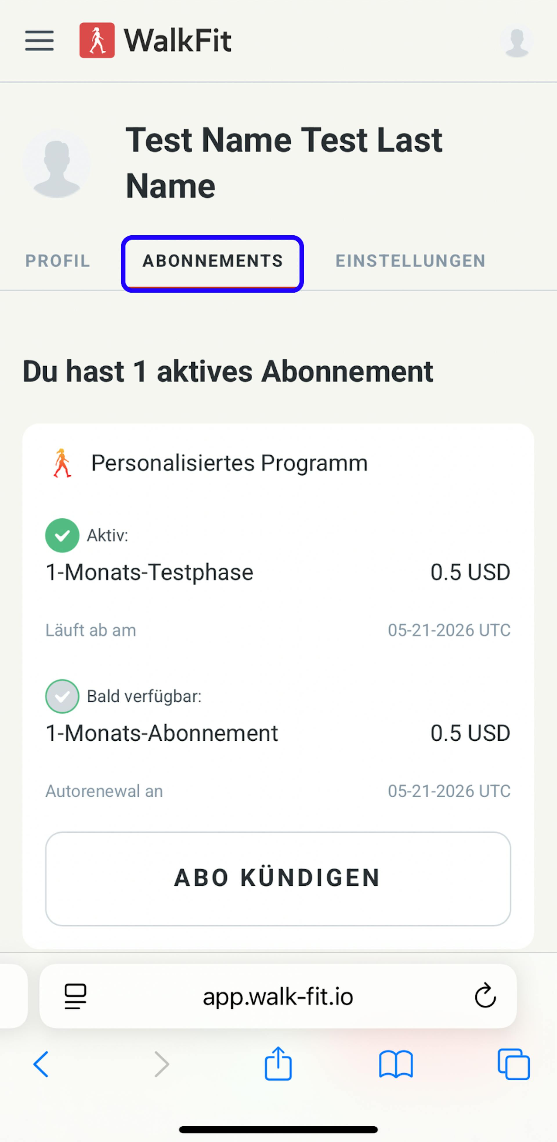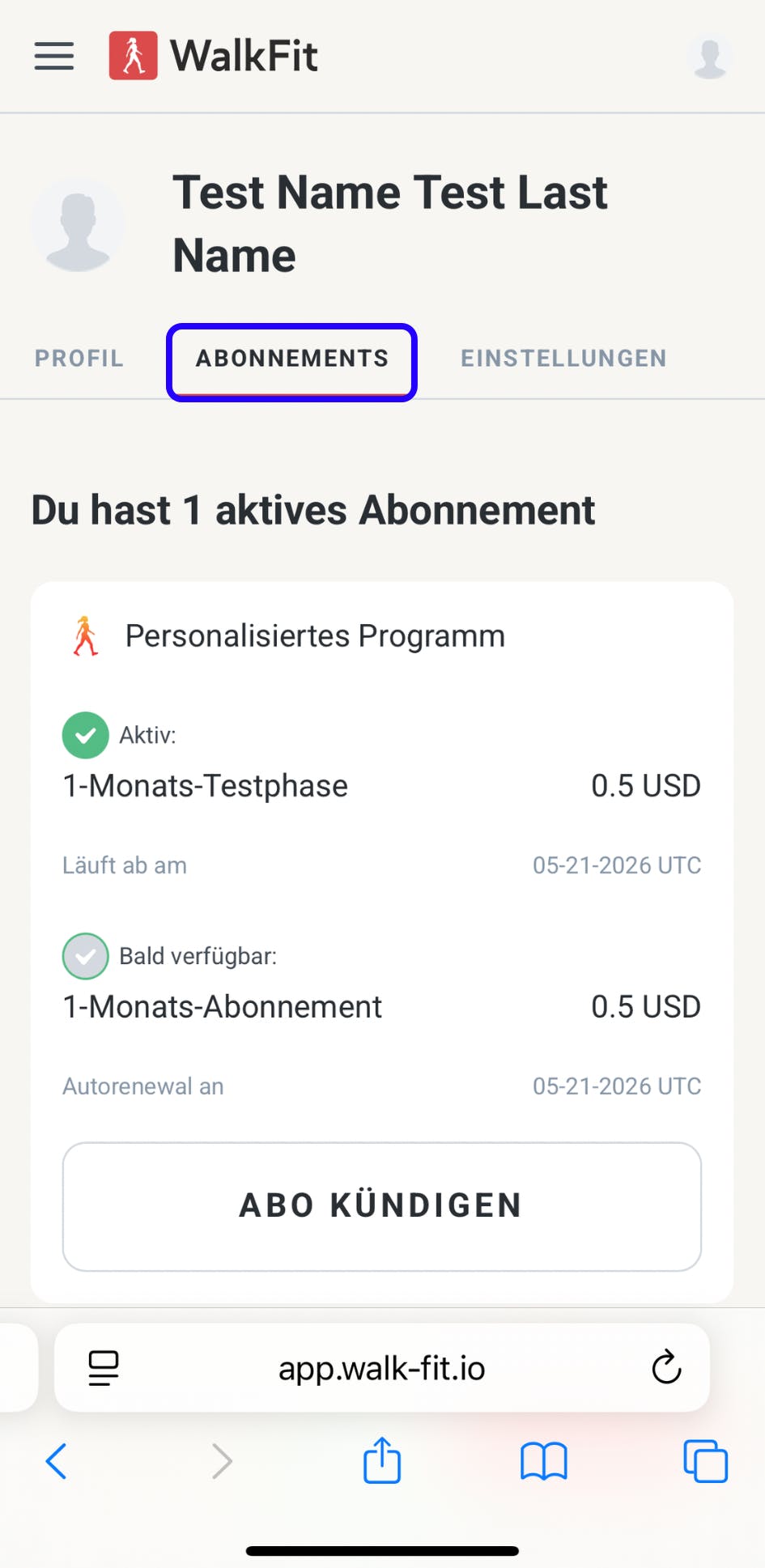5. Im Abschnitt Abonnement finden Sie eine vollständige Liste Ihrer Abonnements und können diese nach Belieben kündigen.