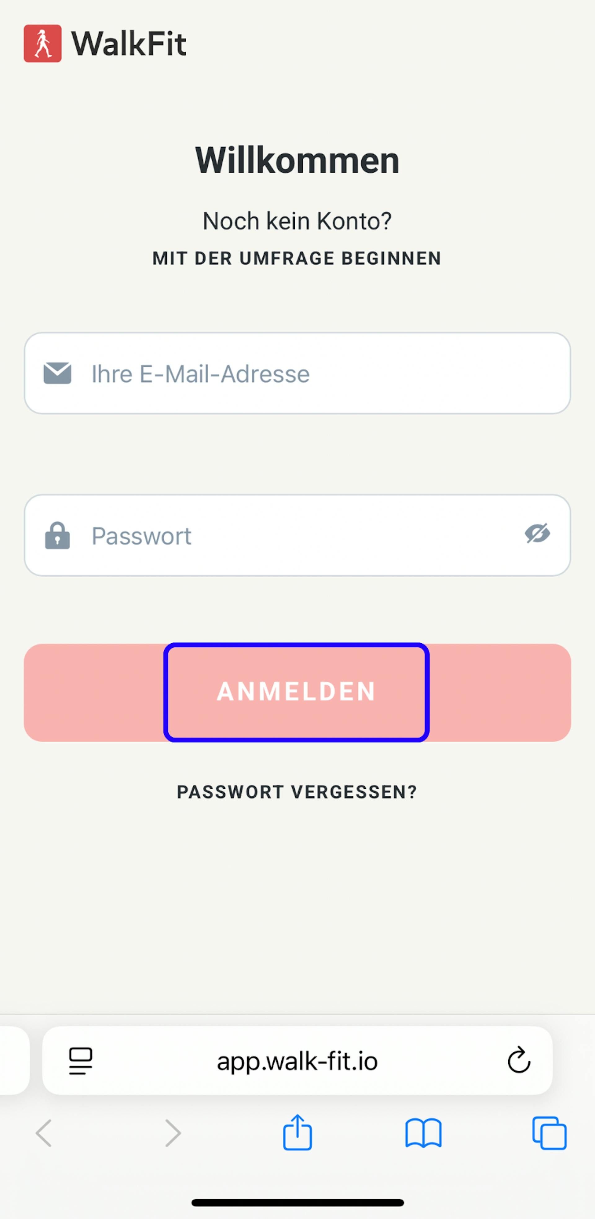 2. Geben Sie die mit Ihrem WalkFit-Konto verknüpfte E-Mail-Adresse und das Passwort ein.