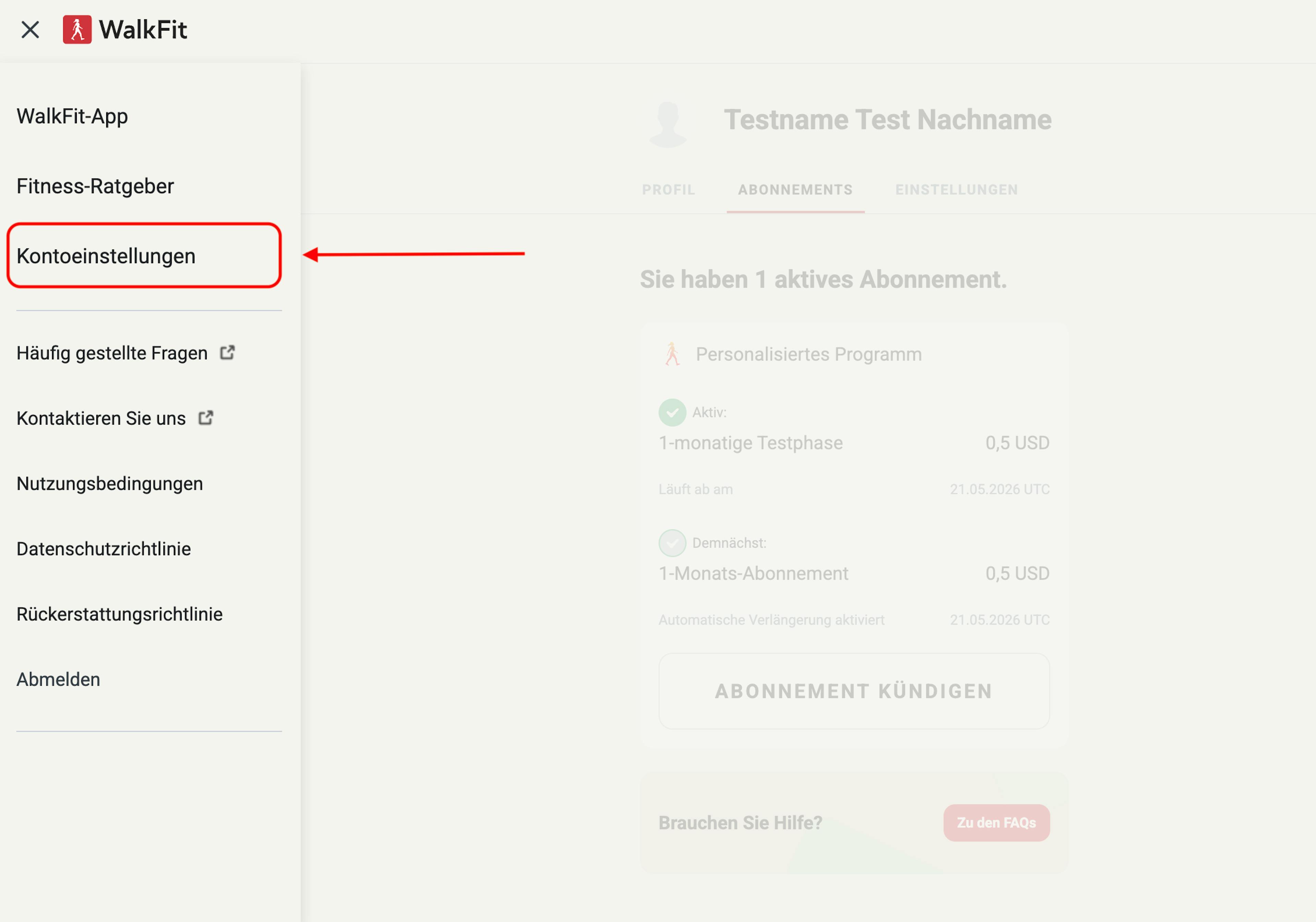 Direkt nach dem Kauf senden wir eine Quittung mit Ihrem Tarifpreis und dem Verlängerungsdatum an Ihre Kontaktemail. Diese E-Mail kommt von support@walk-fit.io. Falls Sie sie nicht im Posteingang finden, prüfen Sie bitte den Spam-Ordner.