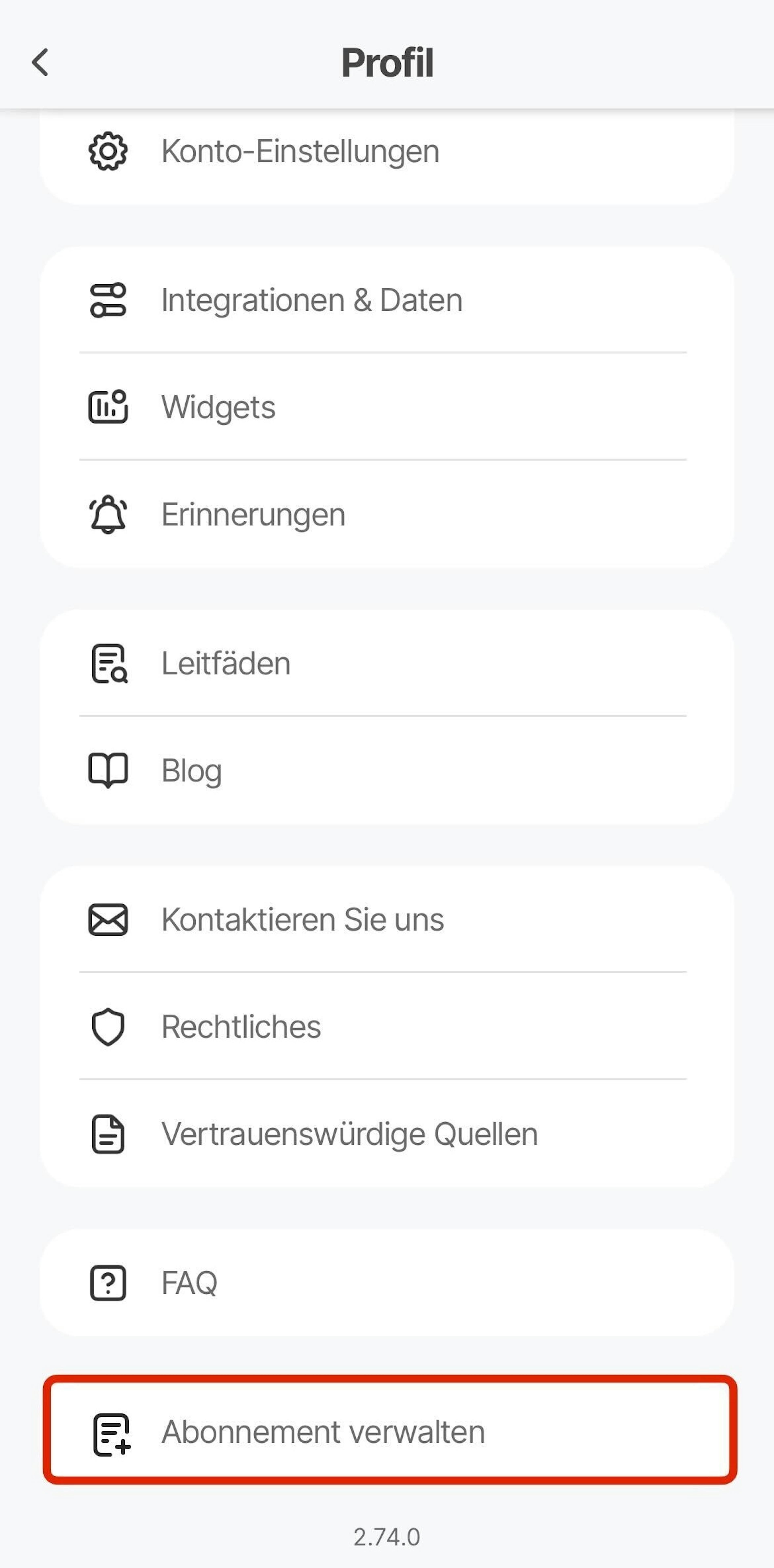 Es gibt drei Möglichkeiten, Ihr aktuelles Abonnement einzusehen: über Ihre Rechnungs-E-Mail, in der App oder über unsere Website.