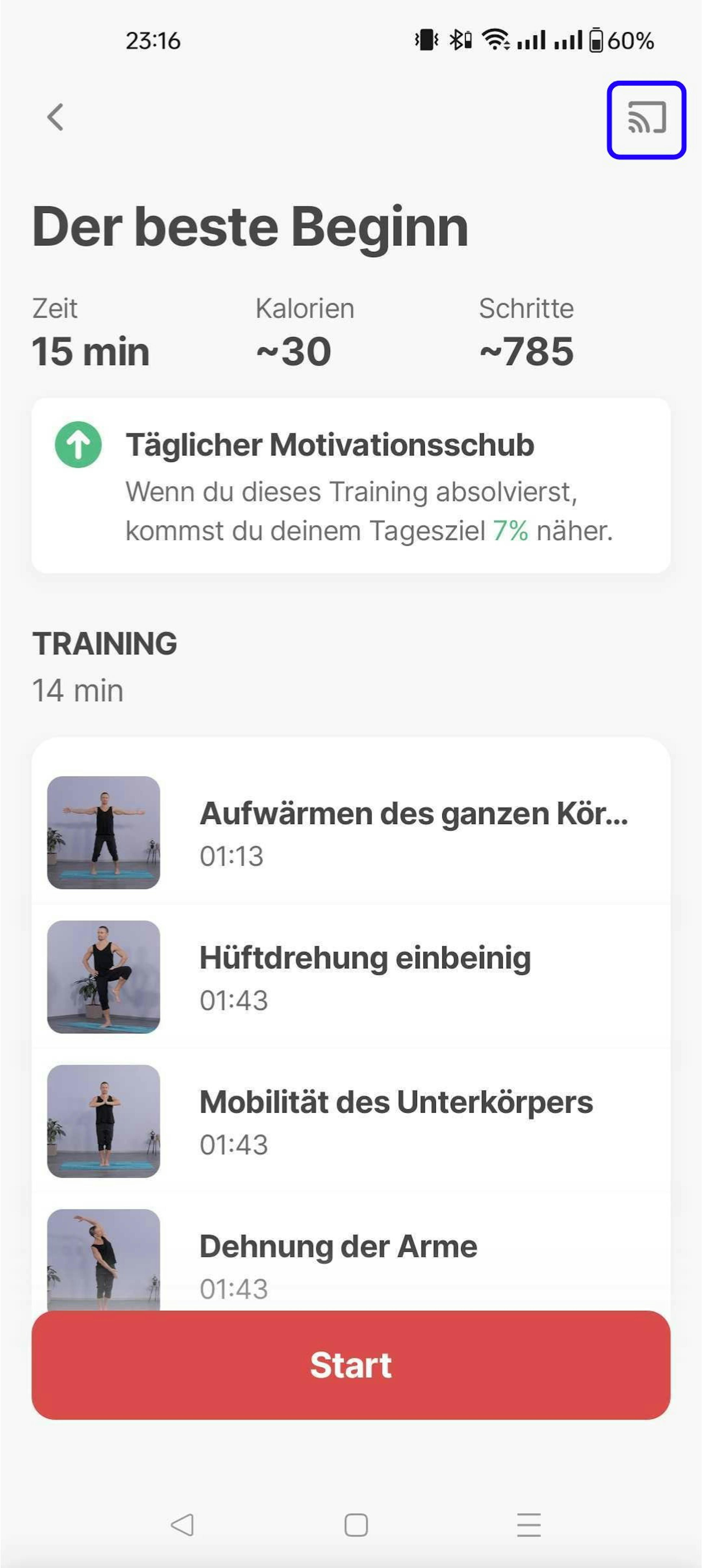 Ja, du kannst den Bildschirm deines Handys auf deinen Fernseher oder Mac spiegeln, um dein Trainingserlebnis zu verbessern. Mit dieser Funktion kannst du Workouts auf einem größeren Bildschirm genießen und hast mehr Freiheit bei der Durchführung verschiedenster Trainings.