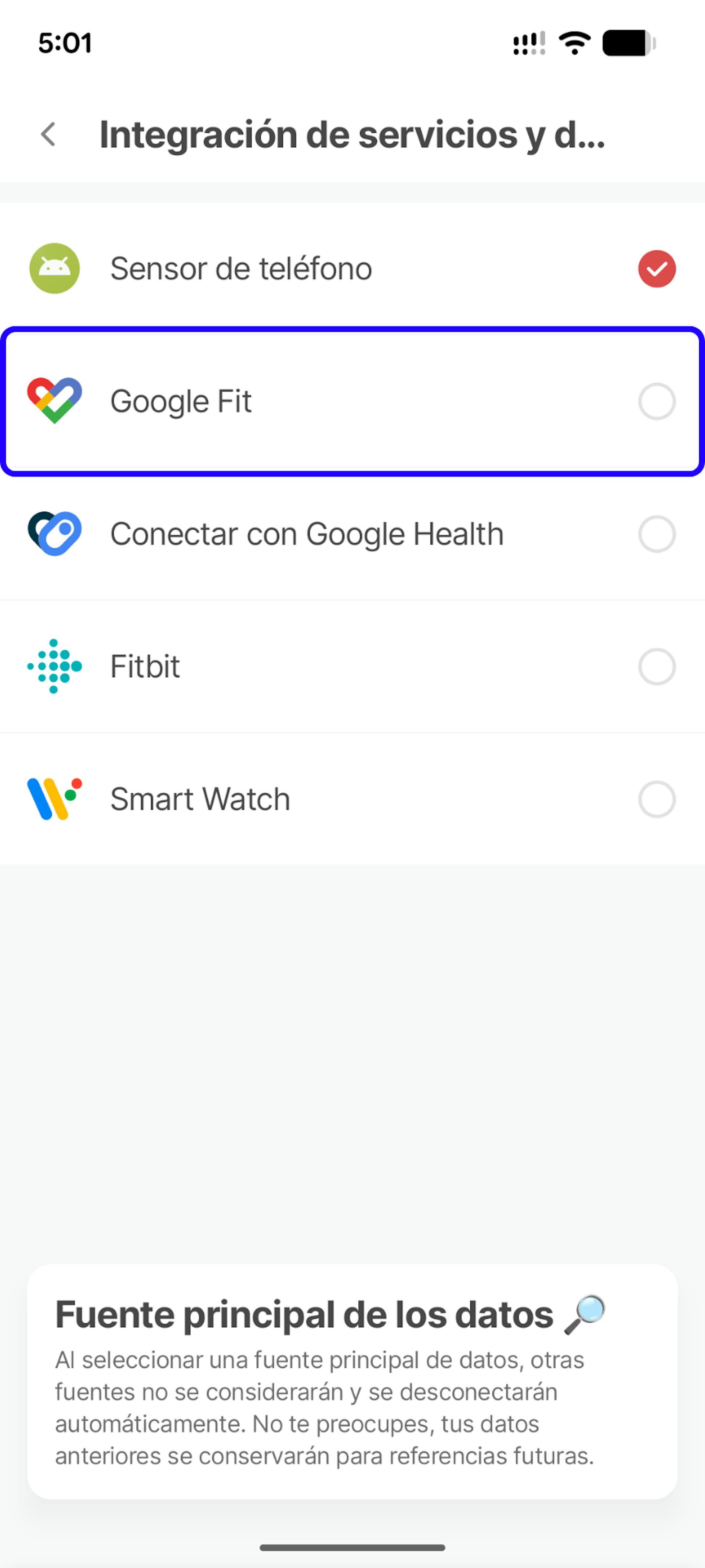 Nuestra aplicación te permite sincronizar datos sobre calorías, distancia, pasos y tiempo de entrenamiento con Google Fit. Solo tienes que configurar esa integración siguiendo estos sencillos pasos: