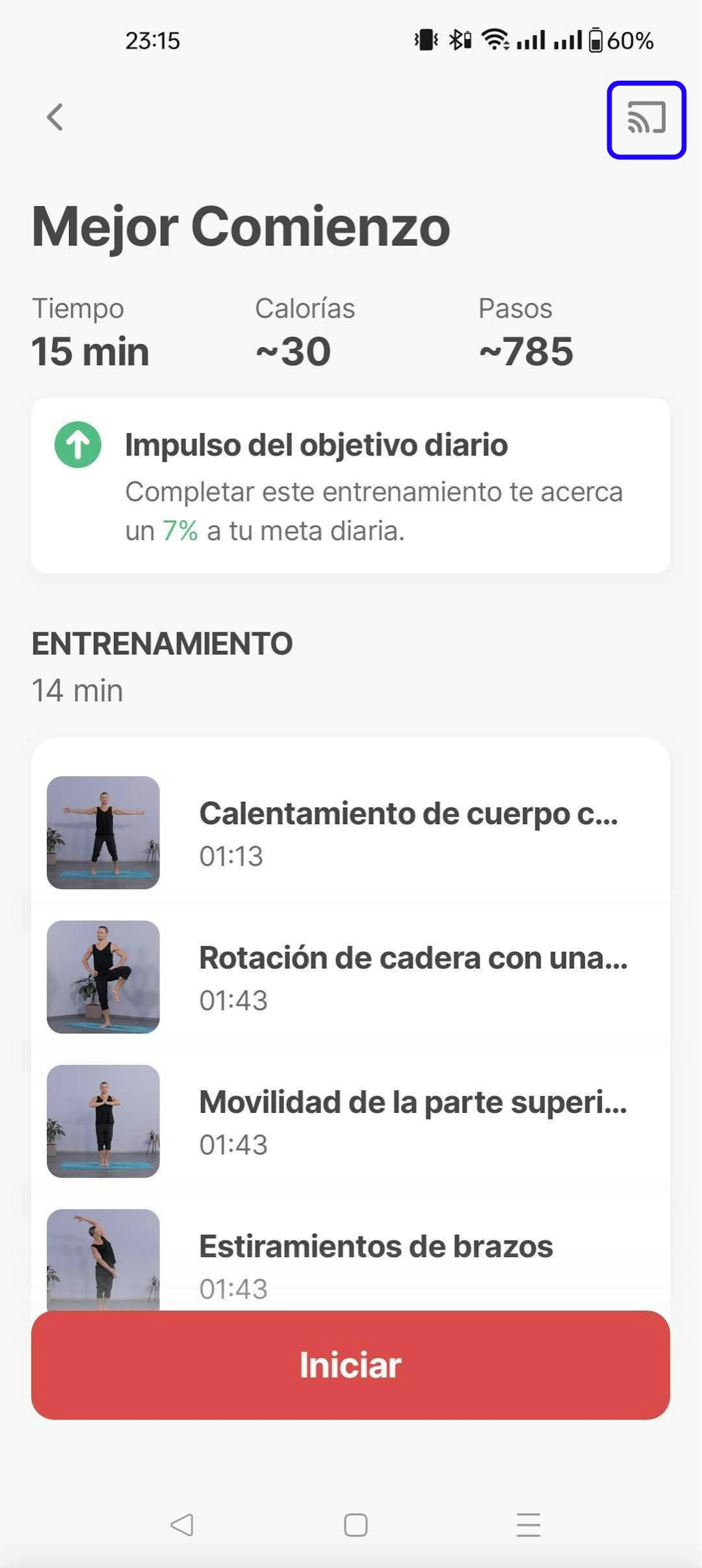 - Toca el botón «Transmitir» en la pantalla de vista previa del entrenamiento.
