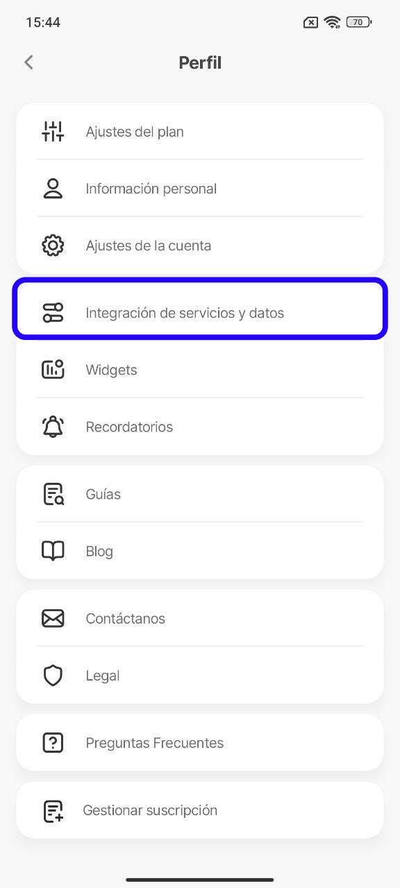 Si quieres integrar cualquier otro dispositivo wearable o aplicaciones de seguimiento, te agradeceríamos que nos contactaras a través del formulario Contáctanos, para que podamos registrar tu solicitud de función.