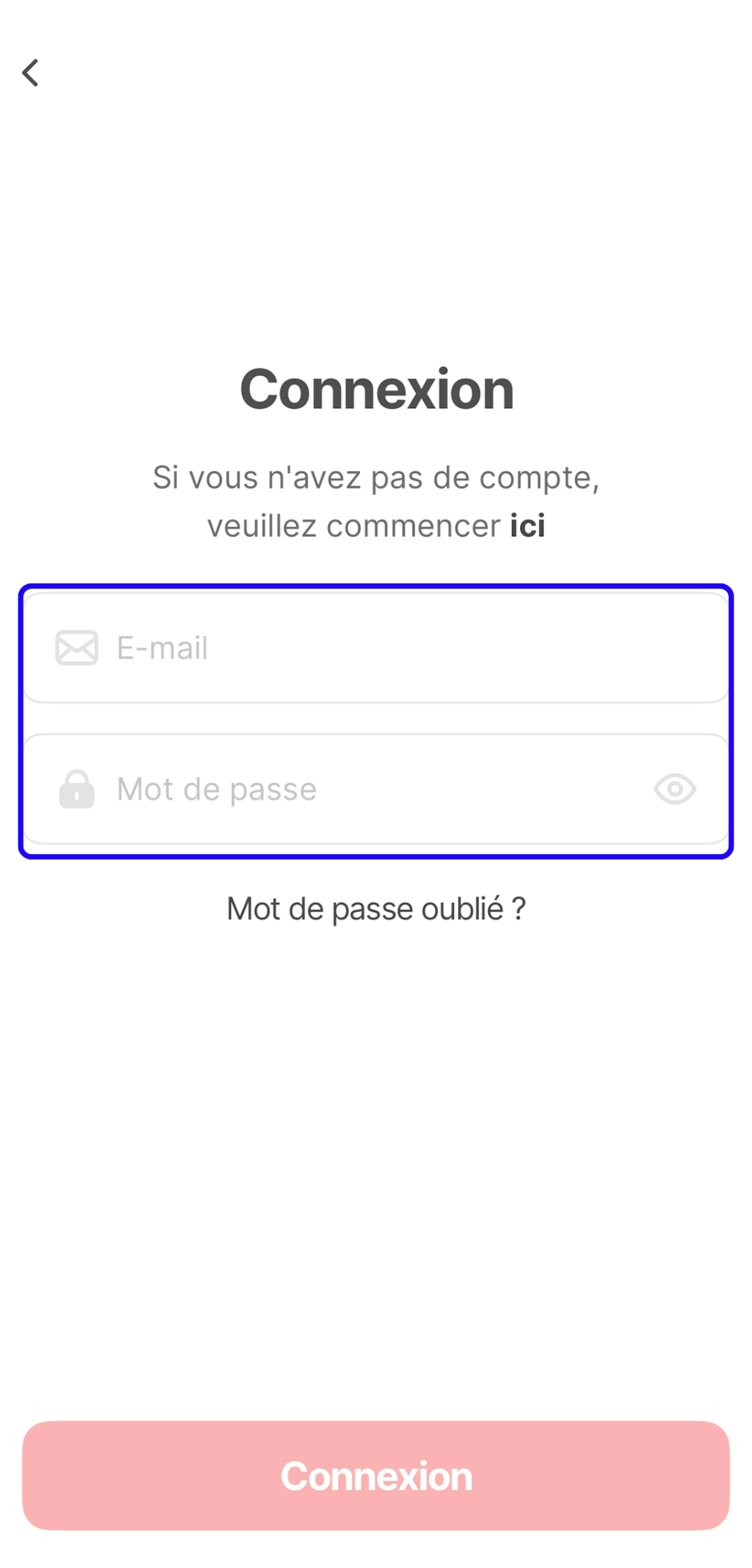 Si votre système d’exploitation est Android,appuyez ici pour télécharger l’application sur Google Play. - Ouvrez l’application et appuyez sur le bouton Connexion sur l’écran d’accueil de l’application, comme illustré ci-dessous :