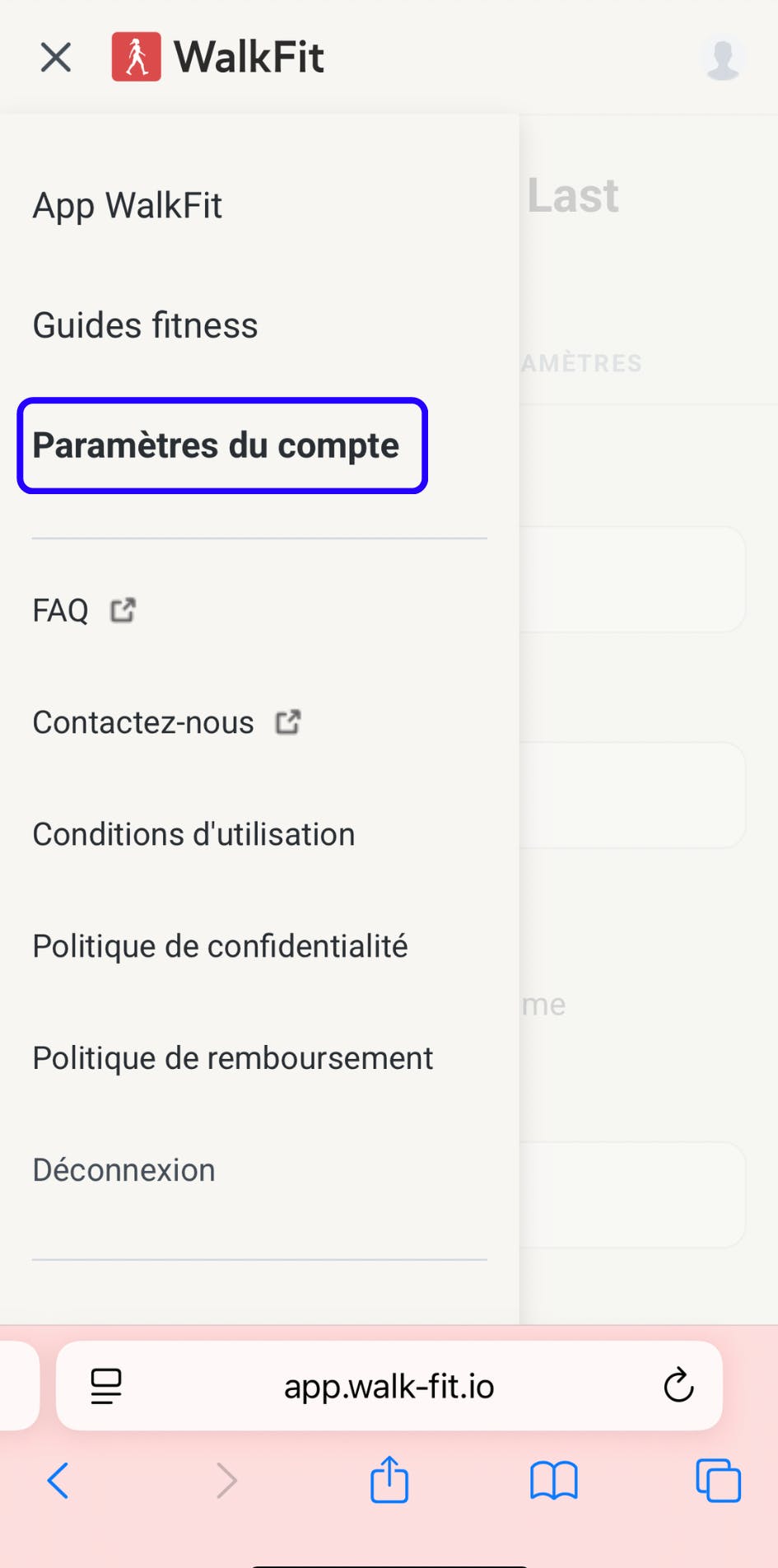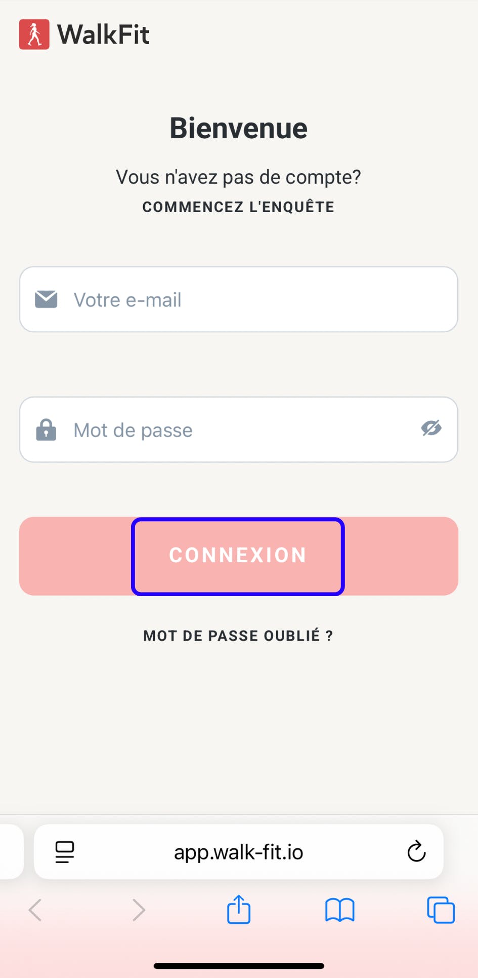 2. Saisissez l’adresse e-mail et le mot de passe associés à votre compte WalkFit.