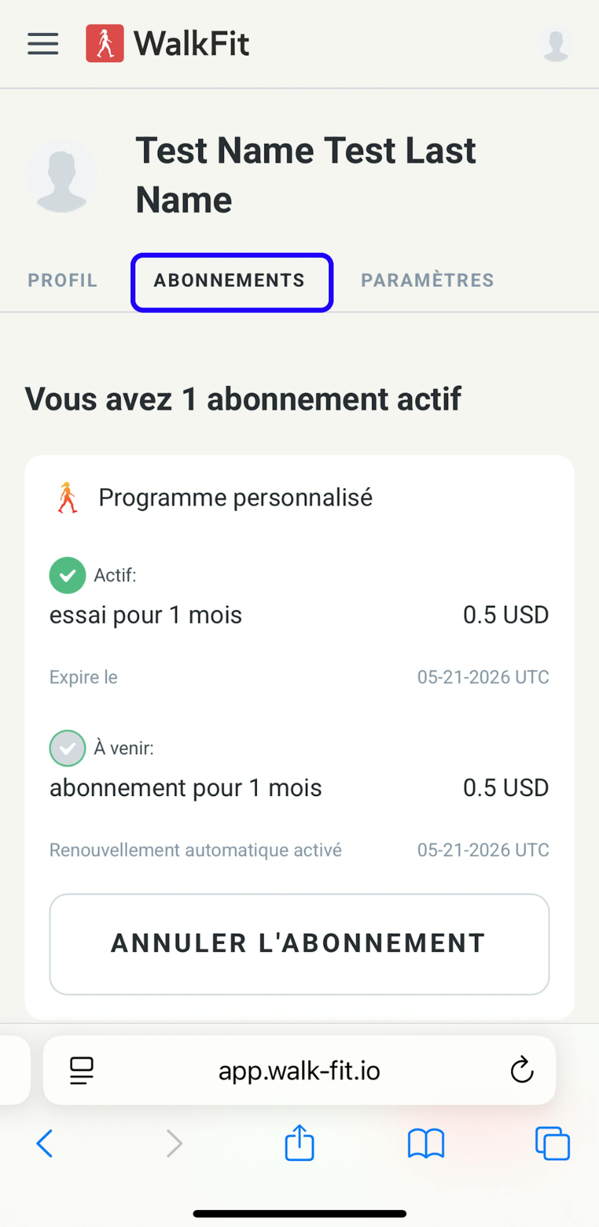 5. Dans la section Abonnement, vous trouverez la liste complète de vos abonnements et pourrez les annuler selon vos besoins.