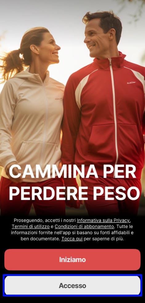 Nessun problema, se hai già acquistato un abbonamento, ti basta installare l’app sul tuo dispositivo per ottenere l’accesso. Una volta aperta l’app, utilizza l’opzione Accesso, come mostrato di seguito: