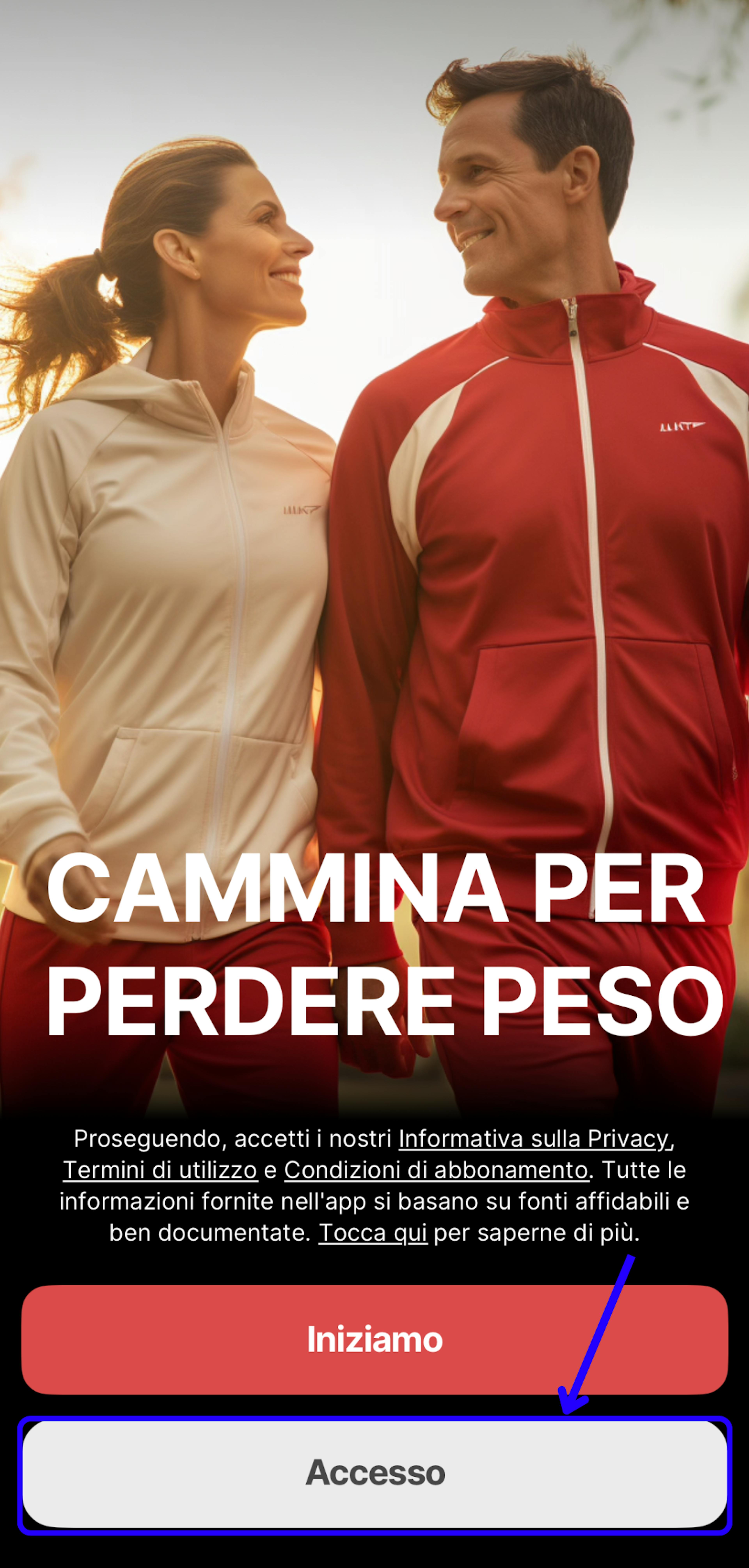 Se il tuo sistema operativo è Android,tocca qui per scaricare l'app su Google Play. - Apri l'app e tocca il pulsante Accesso nella schermata iniziale dell'app, come mostrato qui sotto: