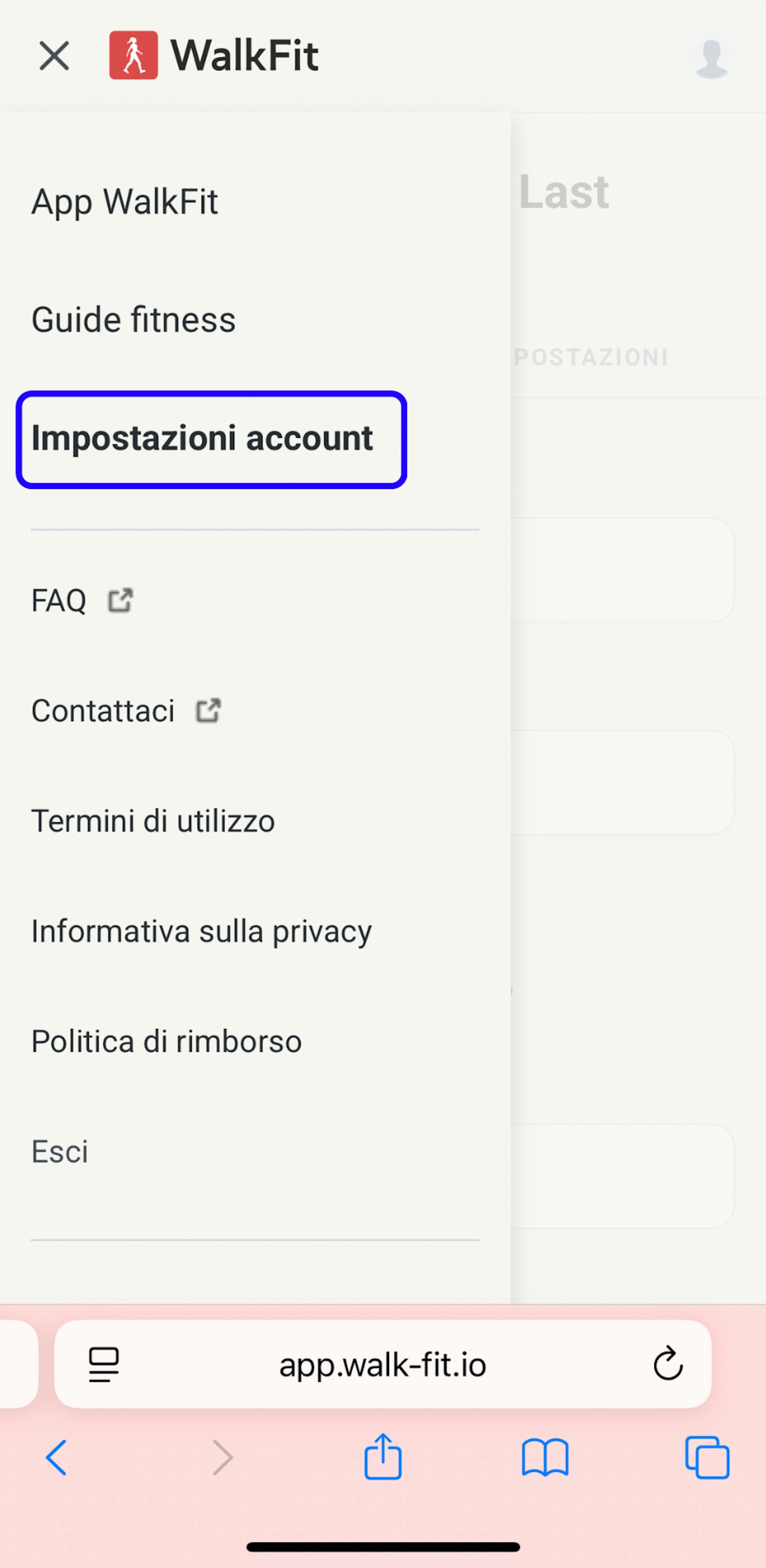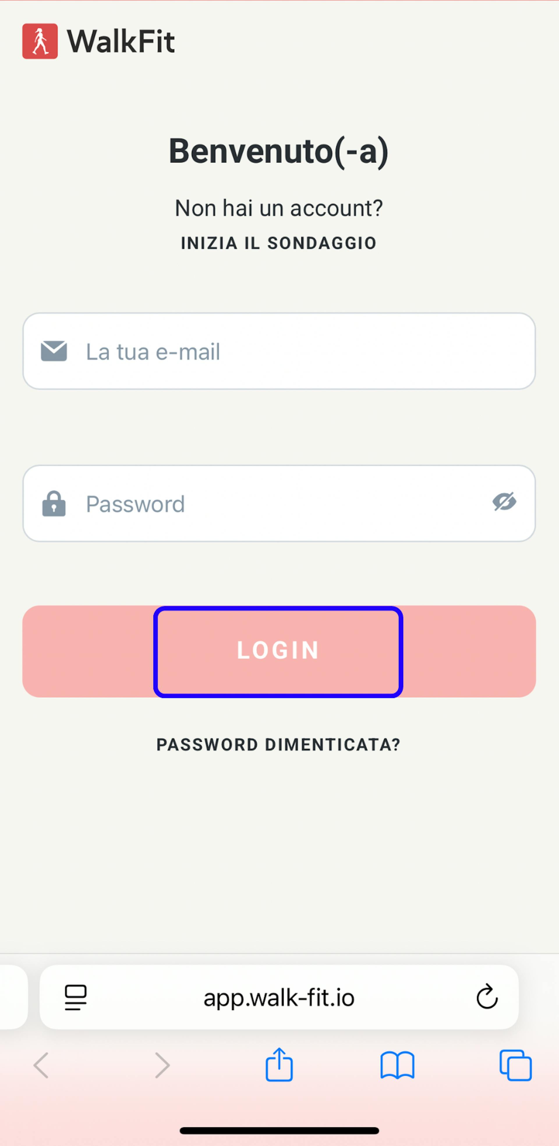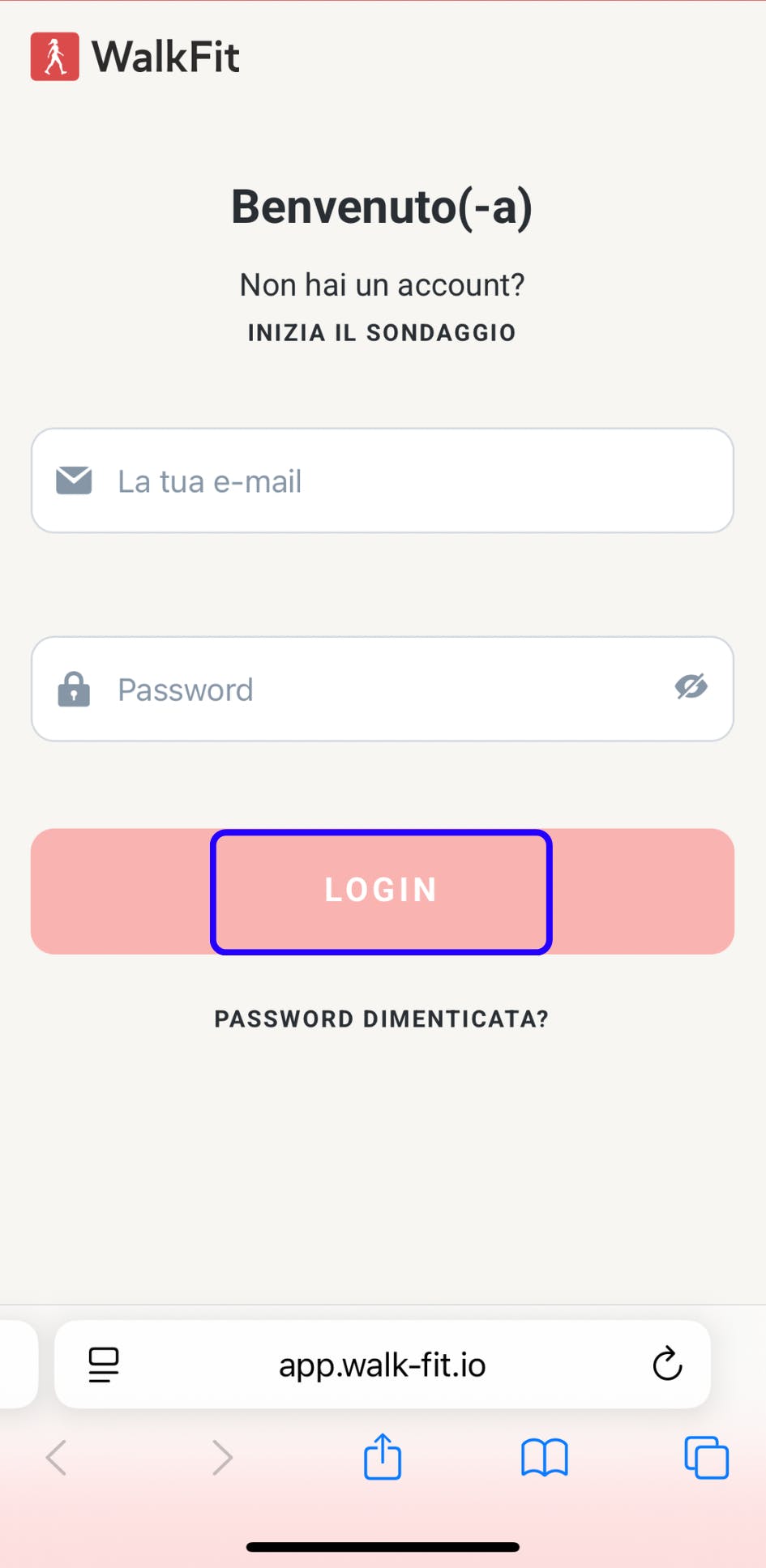 2. Inserisci l'indirizzo email e la password associati al tuo account WalkFit.