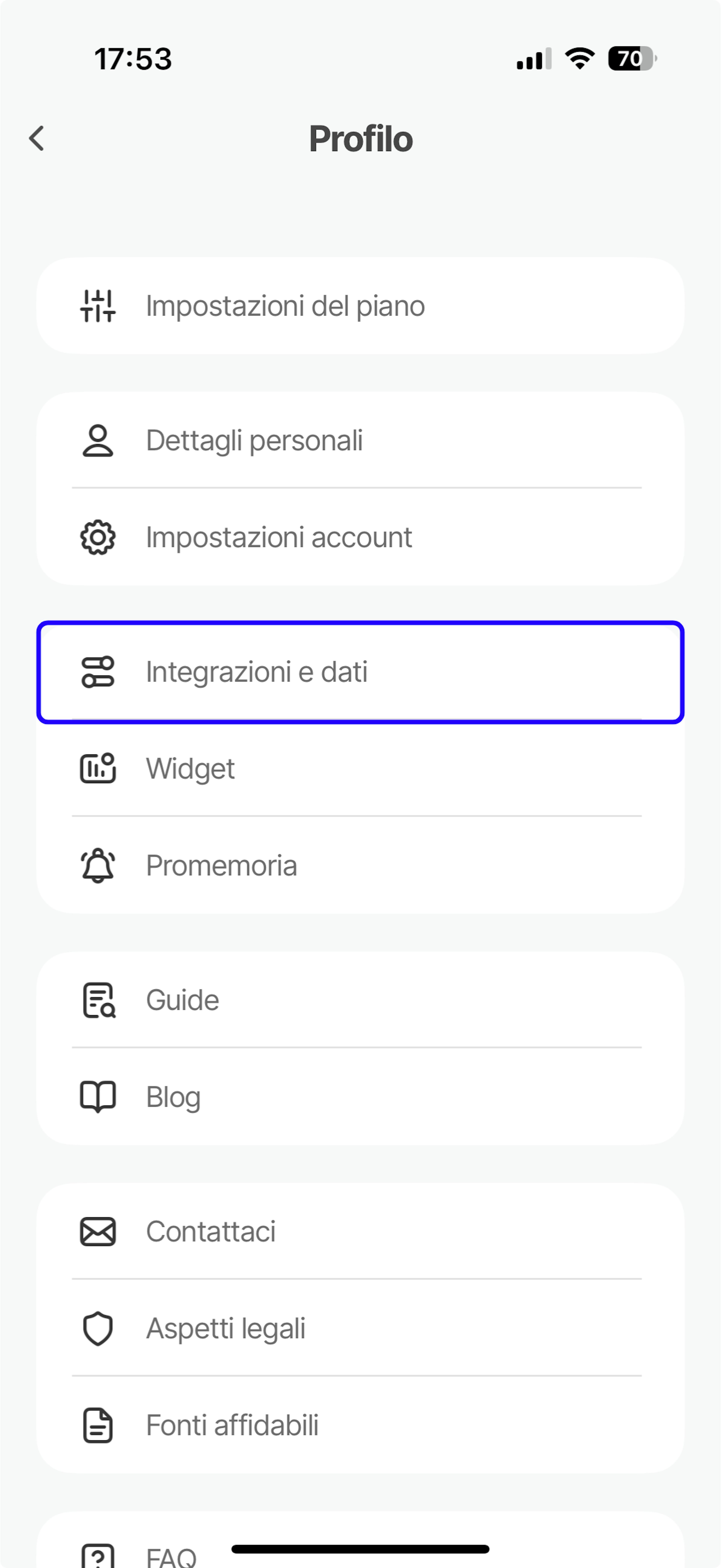 I dati vengono aggiornati ogni 30-60 minuti, oppure non appena apri l'app. Per questo motivo, potresti notare che il tuo obiettivo giornaliero risulta leggermente più basso nella schermata principale o nelle notifiche. Questo è temporaneo e i dati saranno completamente precisi dopo la prossima sincronizzazione. Puoi anche aggiornare manualmente l'app riaprendola o utilizzando la funzione trascina-per-aggiornare sulla schermata principale.