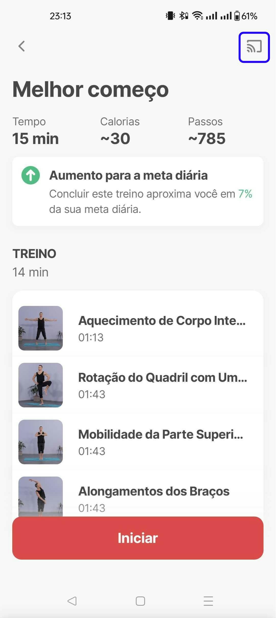 - Toque no botão Transmitir na tela de pré-visualização do treino.