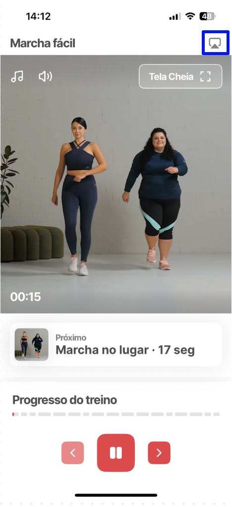 Sim, você pode espelhar a tela do seu celular na sua TV ou Mac para melhorar sua experiência de treino. Esse recurso permite que você aproveite os treinos em uma tela maior, dando mais liberdade para realizar uma grande variedade de exercícios.